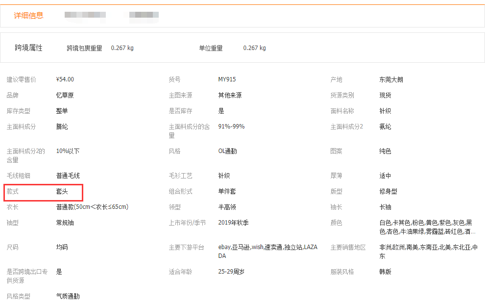比如你卖的产品是女式毛衣,在女式毛衣这个类目下,有一个属性为“款式”,你产品的款式是“套头”。这时,如果有人搜索“套头女式毛衣”,即使你的标题里面没有“套头”,系统也会匹配到你的产品信息,因为你属性里面有写“套头”,与套头毛衣也是相关性高的产品。