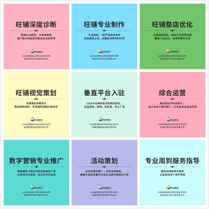 南通迅博信息科技有限公司,是阿里巴巴诚信通产品南通地区授权渠道商,阿里巴巴1688南通地区十年生态合作伙伴。十年来,公司深耕南通地区市场,为有互联网应用需求的中小企业提供电商咨询、店铺诊断、培训孵化及配套解决方案。针对不同规模、行业的需求,从企业触网、平台规划、产品拍摄、店铺装修、运维推广、直播短视频、培训孵化等多环节提供个性化服务。公司深度发掘本地工厂的数字化发展需求,实现源头好厂与市场、与买家的深度契合,助力企业数字化转型,提升供应链效率,降低运营成本,全方位的帮助工厂生意变得更简单。
