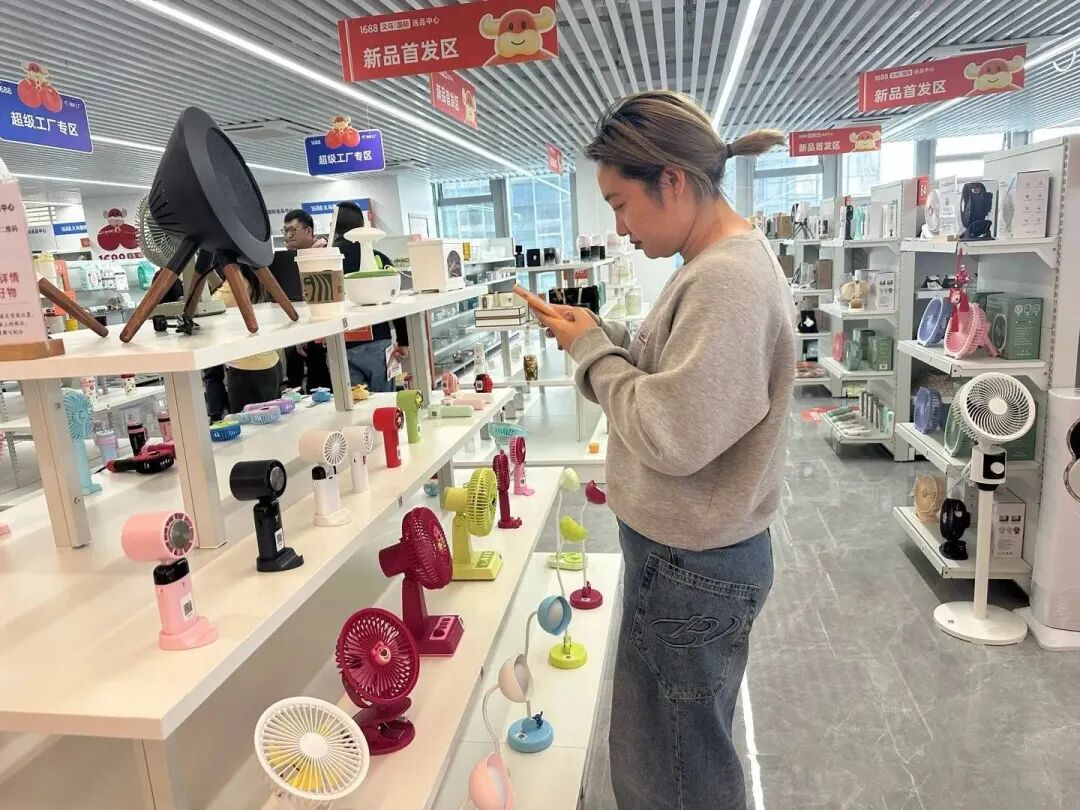 拿起手机,对准商品上方的二维码进行扫描……3月20日的午后,在1688义乌国际选品中心,买家刘先生正在了解一款便携式电风扇的详情。