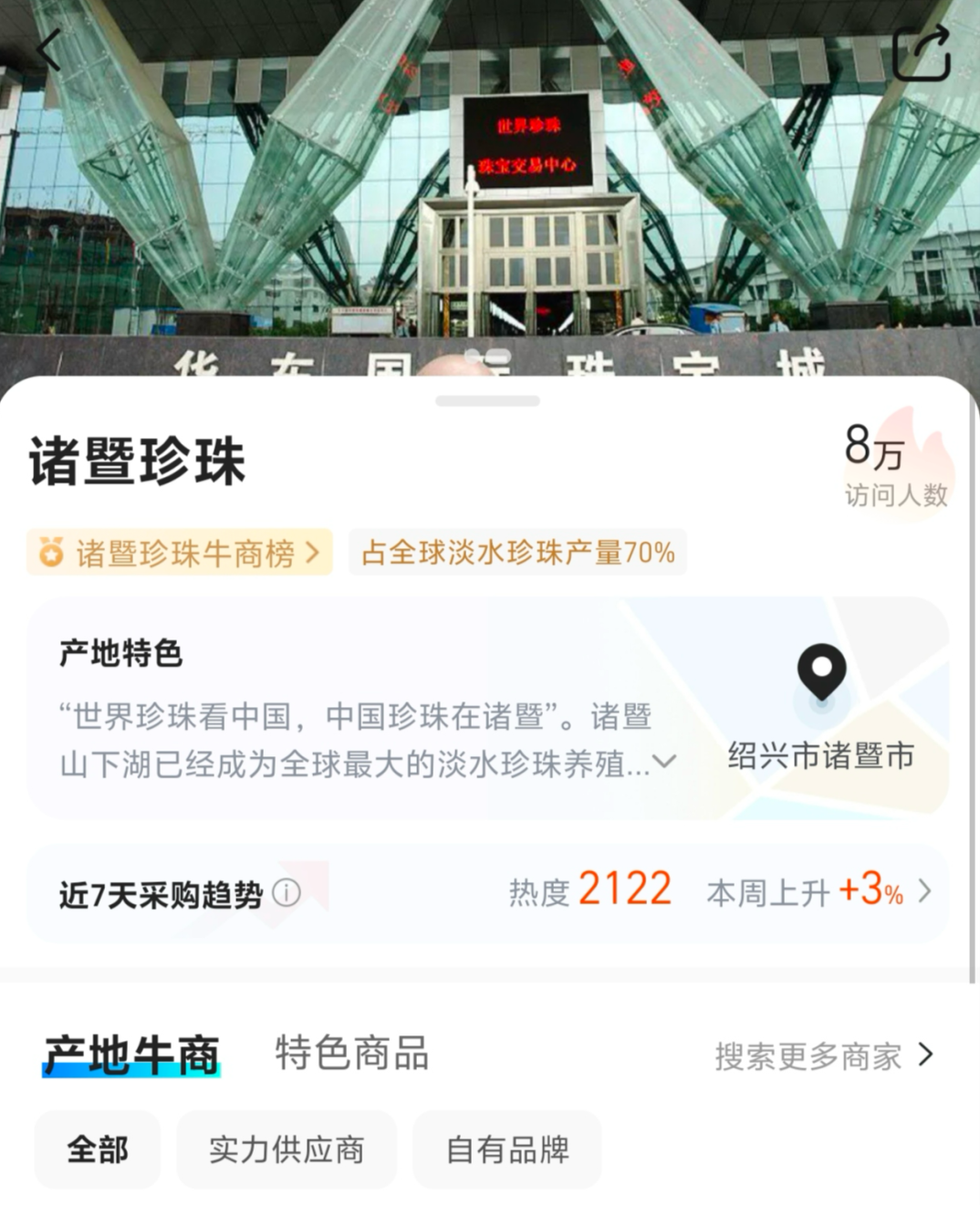 诸暨被誉为中国的珍珠之乡,不仅自身生产珍珠,也是中国珍珠产业的关键集散地,全球73%的淡水珍珠交易和全国80%的交易量都在此进行。