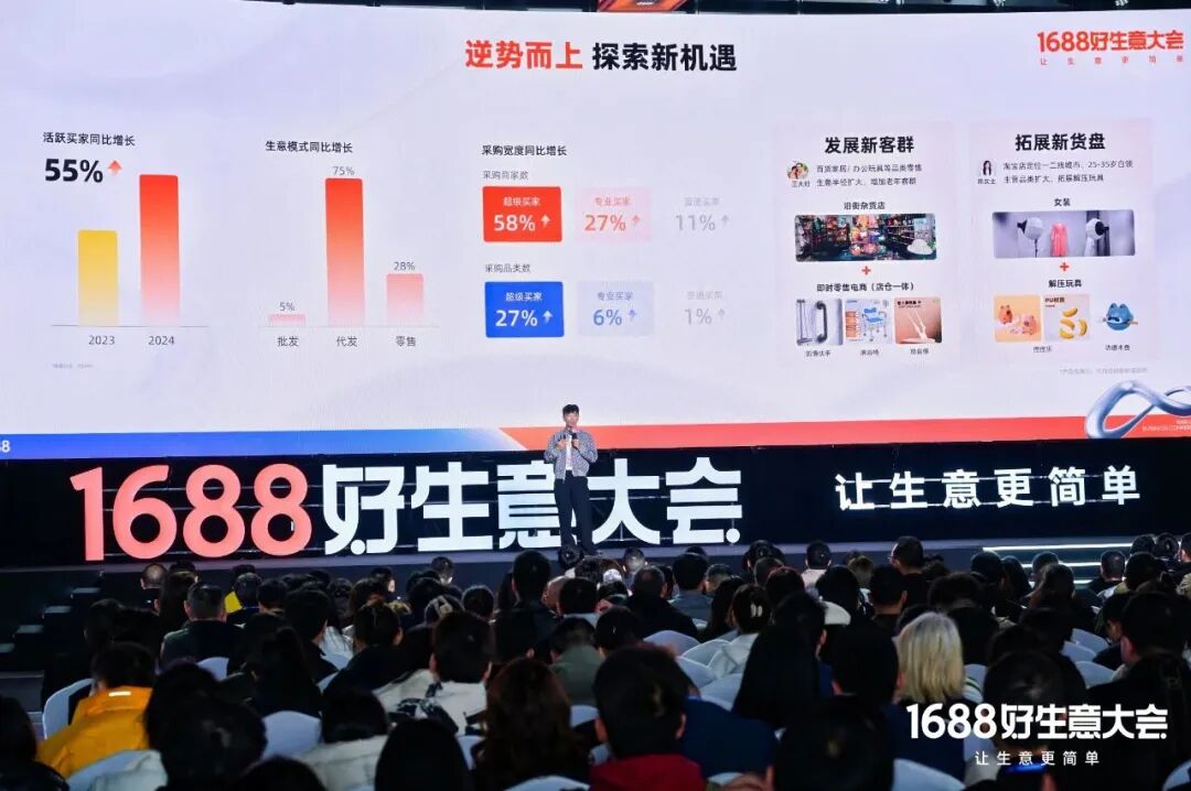 2024年,1688平台的活跃采购商数量较上年大幅增长55%。