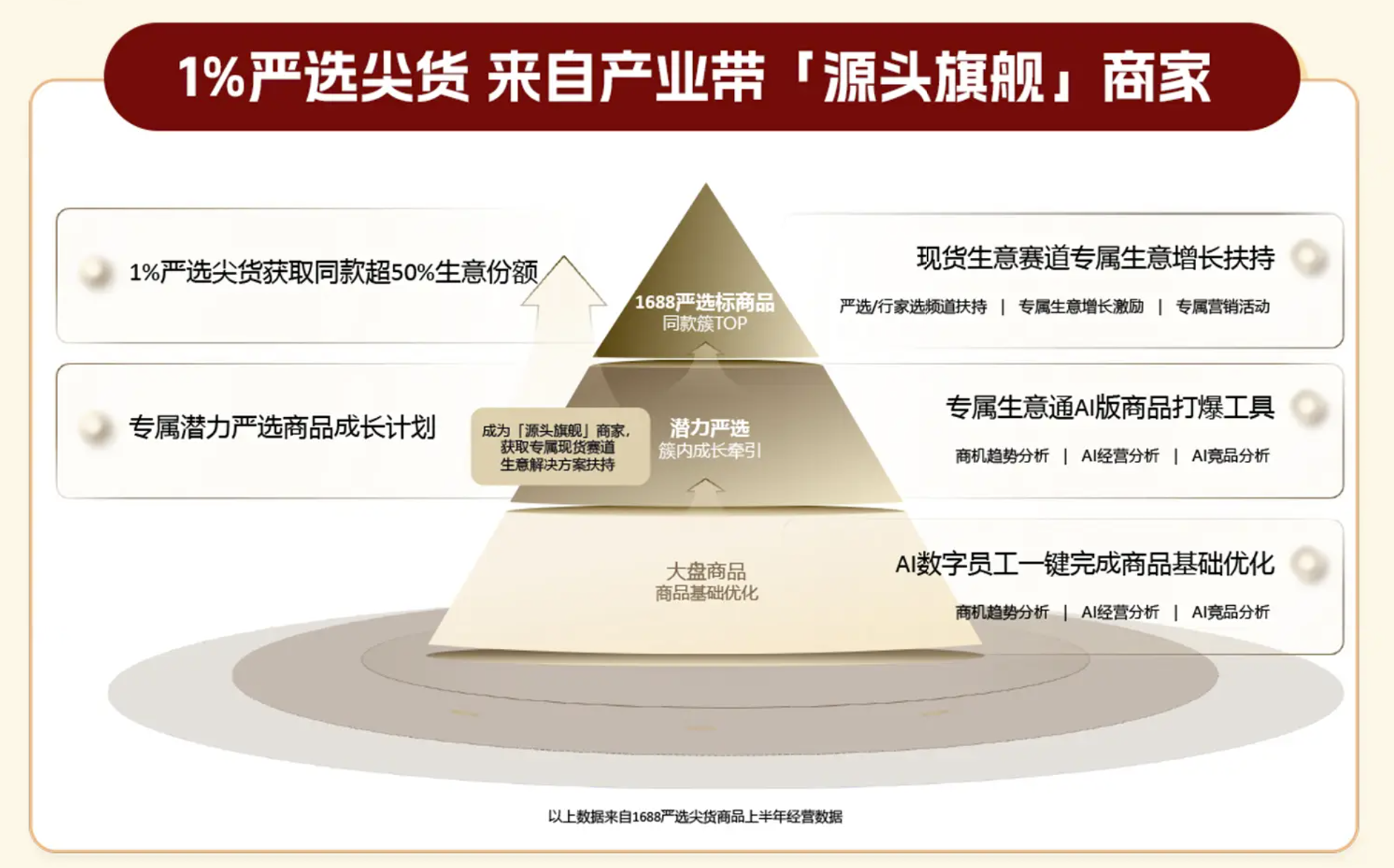 近年来,1688平台持续扶持优质产业带源头厂商,通过垂直生意赛道精准扶持,不断去劣扶优,结合AI能力重构产业带供应链企业经营链路。为助力优质产业带源头厂商在平台经营中持续脱颖而出,1688将推出“源头旗舰店”商家产品,重点帮助产业带源头的优质厂商和供应链头部商家获得生意的增长!