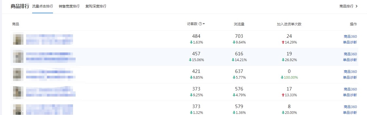单点故障:若仅个别商品数据骤降,可初步判定为该商品自身问题(如违规降权、差评冲击、库存售罄)。此时,应立刻进入 “商品360” 进行深度体检,定位病因。