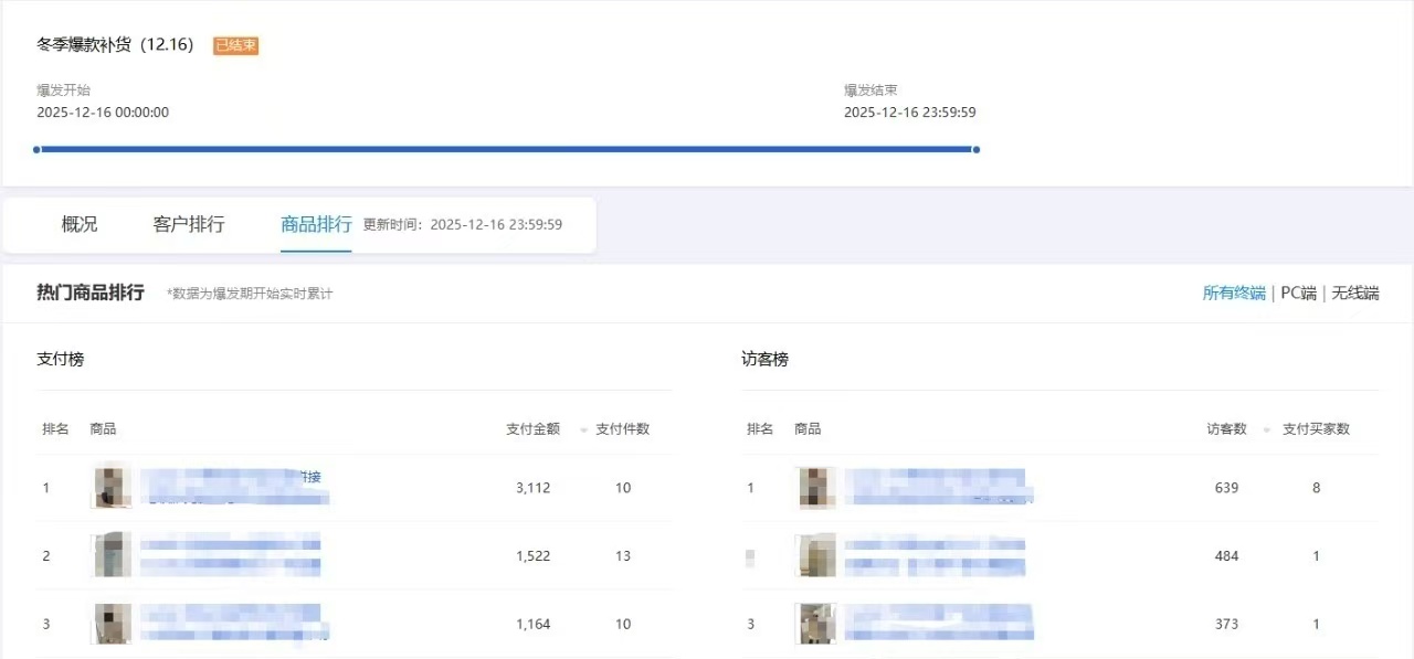 商品矩阵重构:将活动中涌现的“黑马商品”纳入主推计划,优化其详情页与库存,准备承接下一波流量。