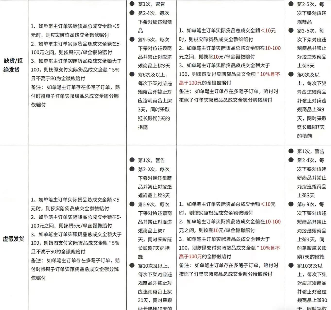 旧规:缺货/虚假发货赔付为 5元起步,50元封顶。
